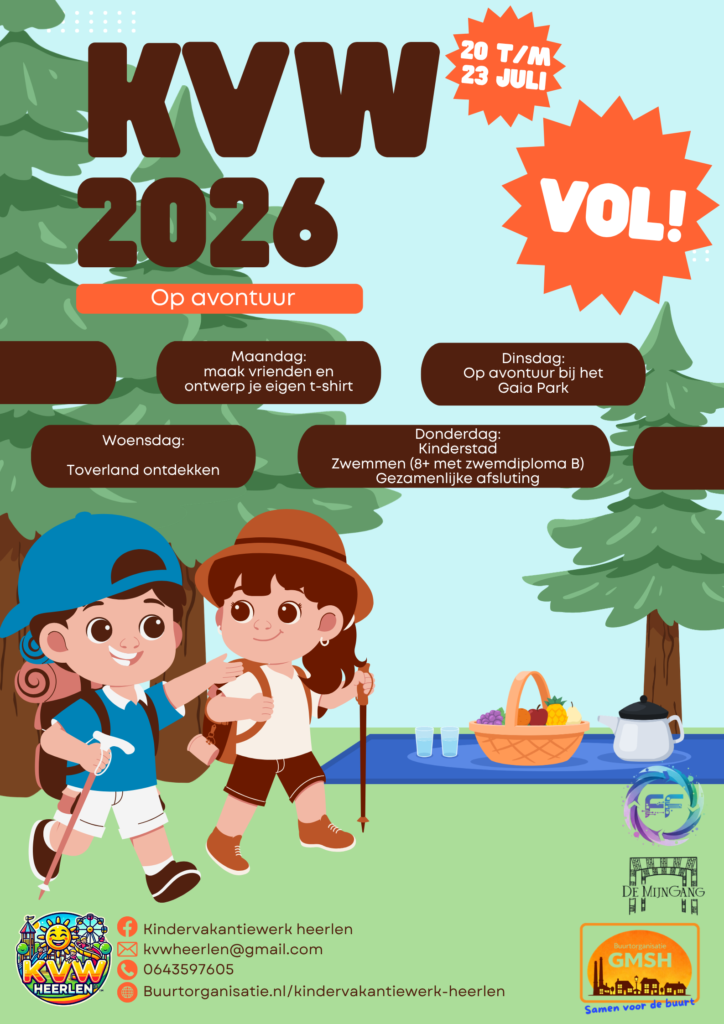 De inschrijving voor Kindervakantiewerk Heerlen 2026 zijn geopend. Inschrijven kan tot en met zondag 31 mei! Inschrijven kan via deze link.